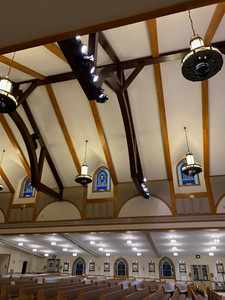 APAV Solutions was happy to help St. Mark the Evangelist Catholic Church improve their Sanctuary lighting while saving money. Eight Chauvet Professional Ovation ED-200WW and thirteen Ovation FD-205WW LED fixtures replaced the churches existing conventional fixtures. The church was very keen on the idea of line dimming LED fixtures and when they found the Ovations they knew the time was right. “Since we expect our system to be changing in the future, when we found a fixture that could both be line-dimmed and receive DMX control, we knew we found our light,” said Mark Devaney with St. Mark. The fixtures will be changed to DMX mode when the church is ready for Phase II, which will replace their dimmer rack and convert their house lights.